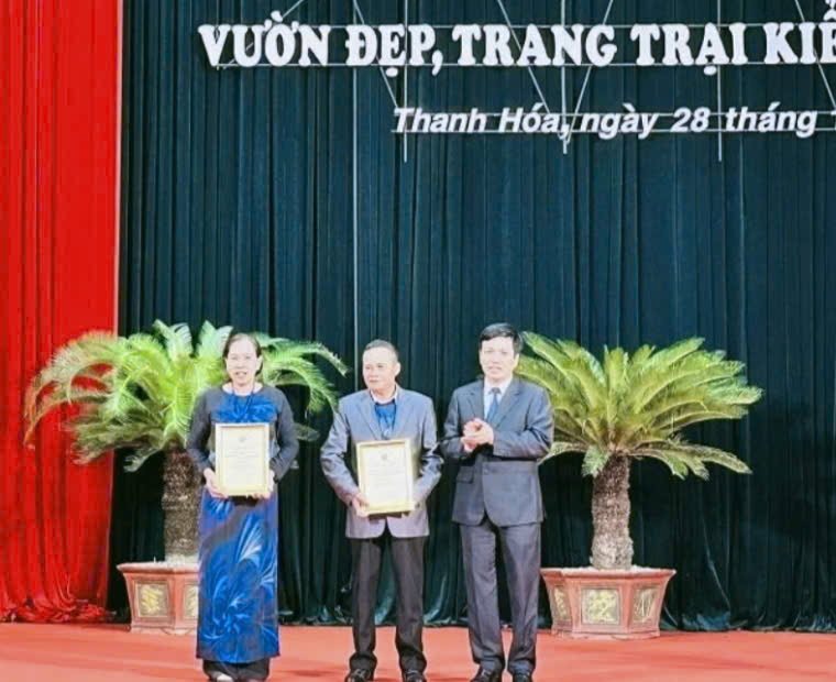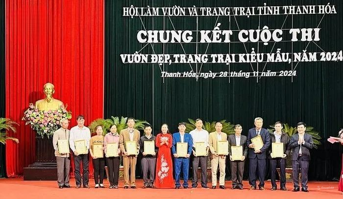 Ông Võ Duy Sang, Chủ tịch Hội Làm vườn và Trang trại tỉnh Thanh Hóa trao giải nhất vườn mẫu cho các thí sinh.